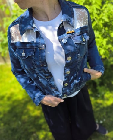 Parce que la créativité, ça ne s'arrête pas ! Après les écharpes qui ont conquis tant d'entre vous, j'ai eu envie de relever un nouveau défi : transformer des vestes en jean en véritables œuvres portables.